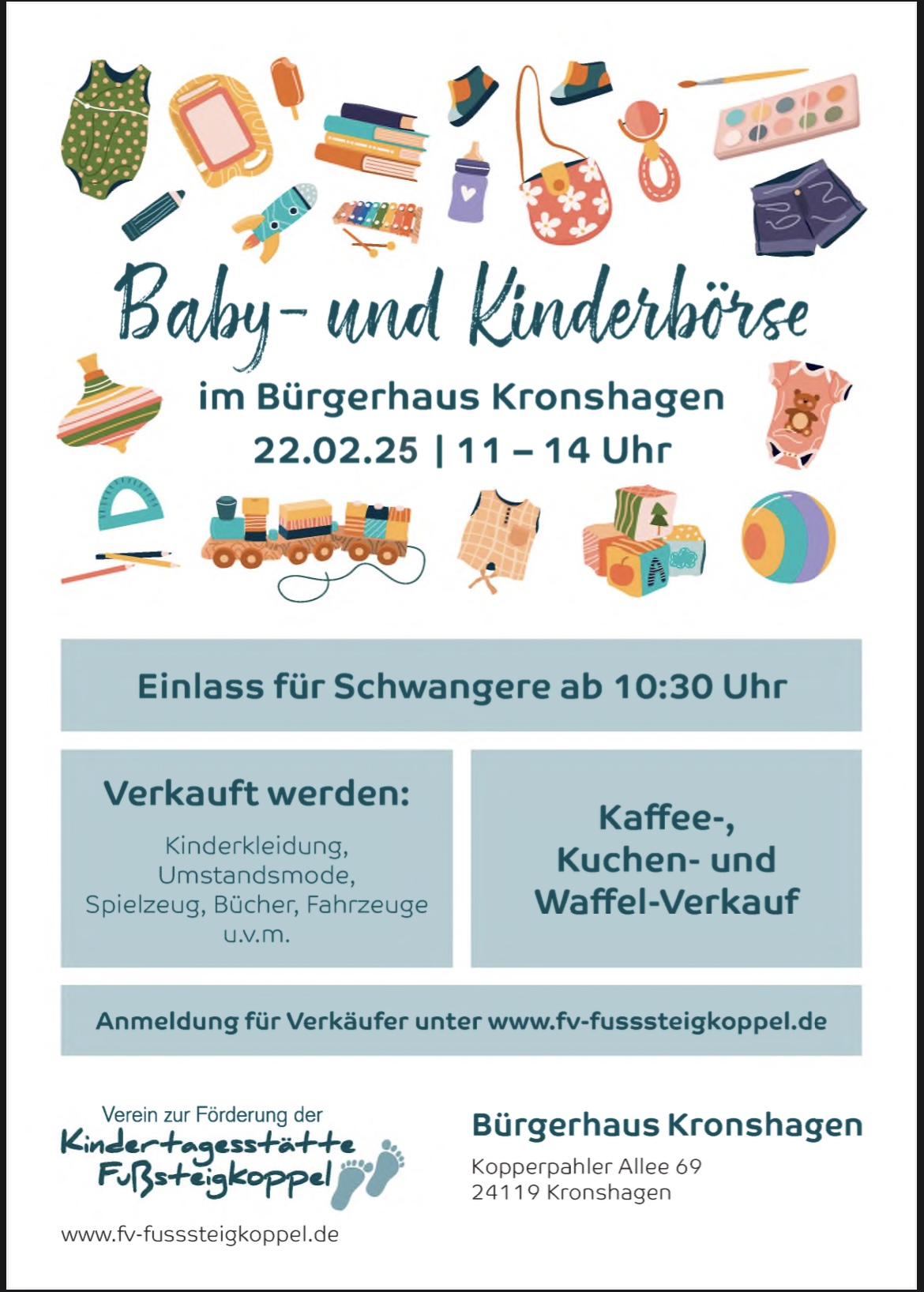 Die nächste Baby- und Kinderbörse findet am 07.03.2026 im Bürgerhaus Kronshagen statt.